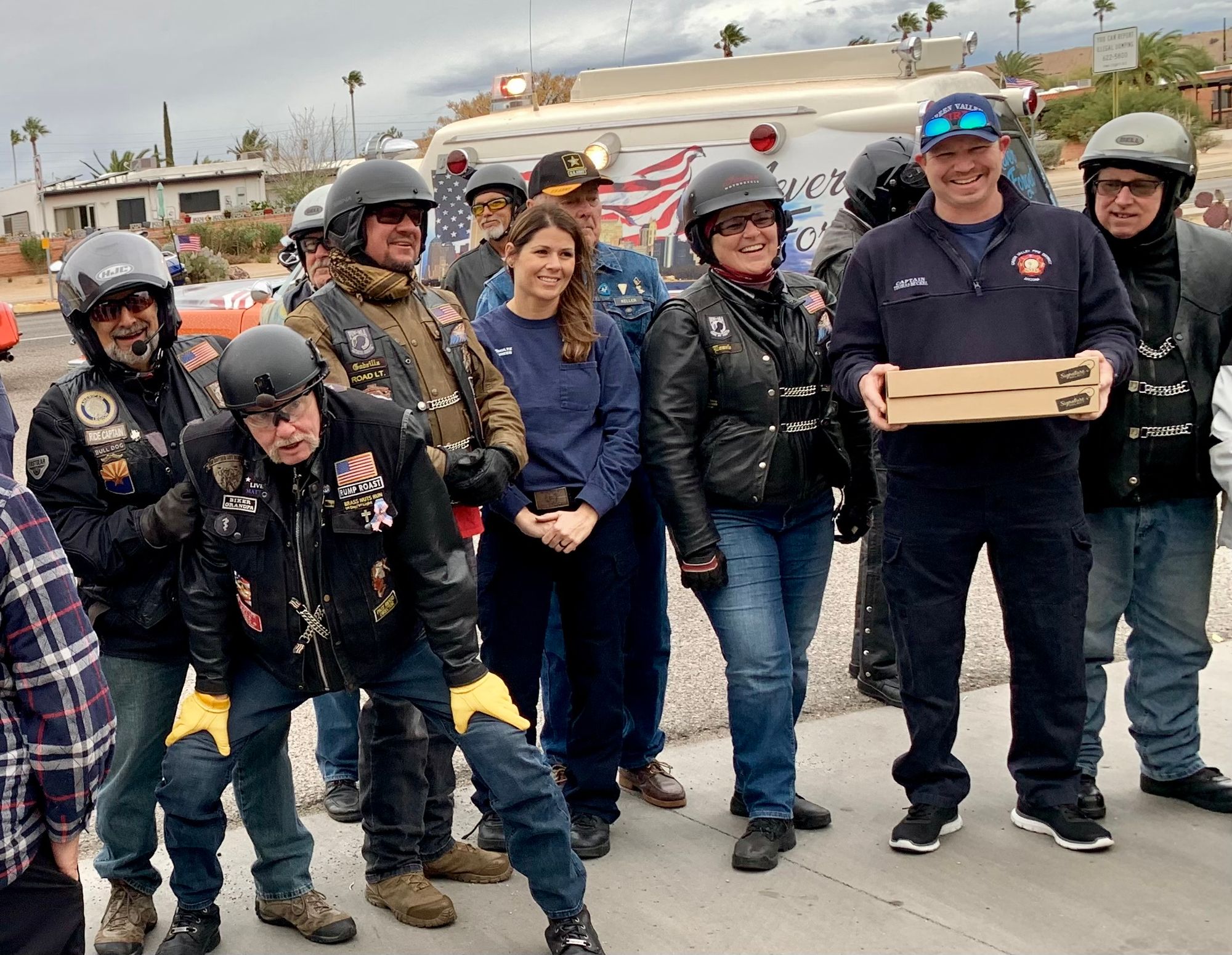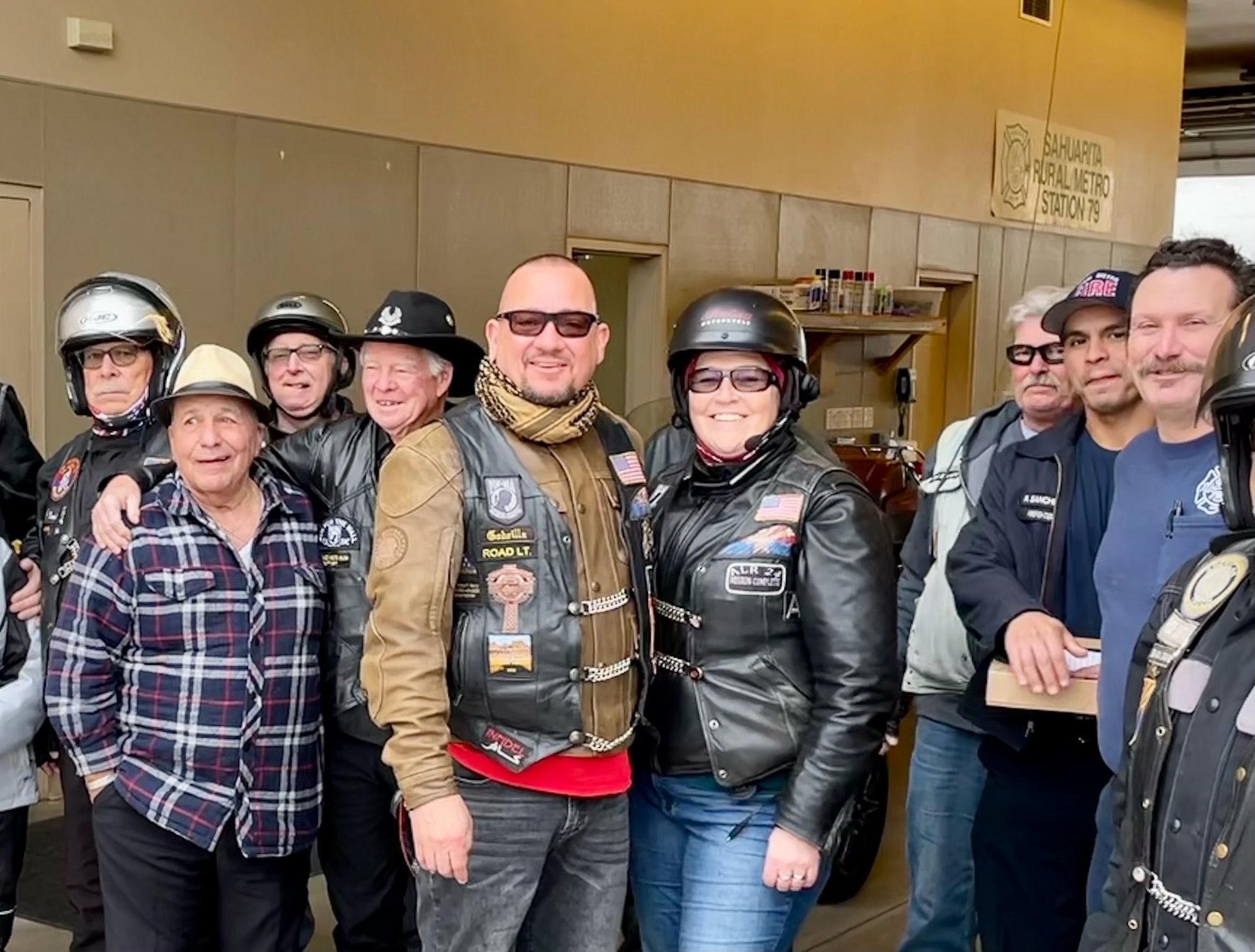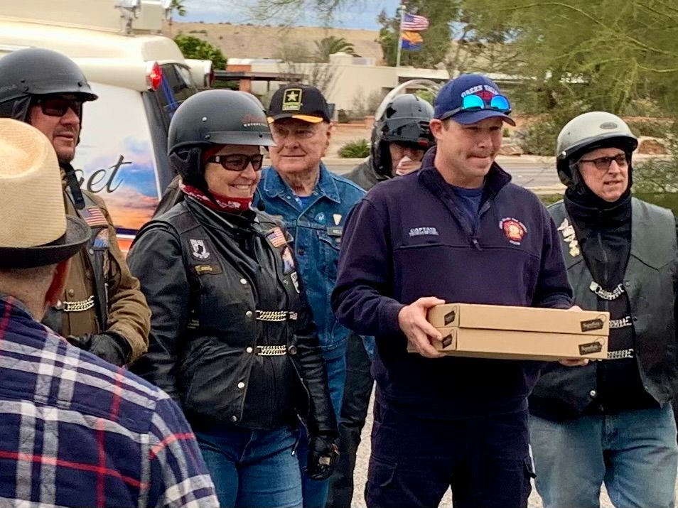With a great heaping supply of God's Blessings, an Emergency Call for the Fire Crews at Station #'s 152 & 153 (our first two visits) the doughnut Delivery and 'visits' were QUICK. That extra time had us sipping hot conncoctions at the "Thaw" after party before the Rain hit the ground. We did miss a few of our BNR Riders at the Thaw though, they 'beat feet' home to STAY dry.