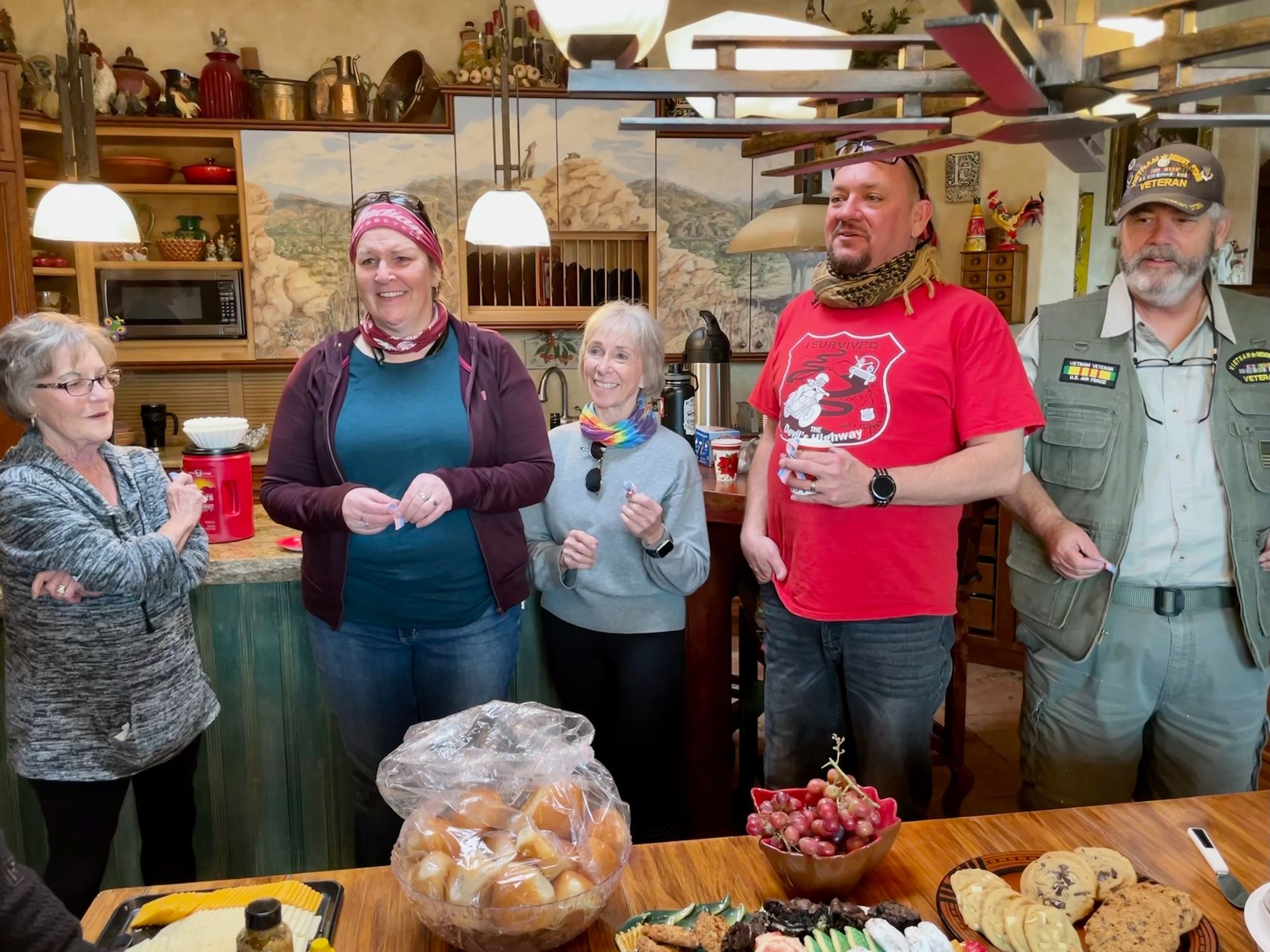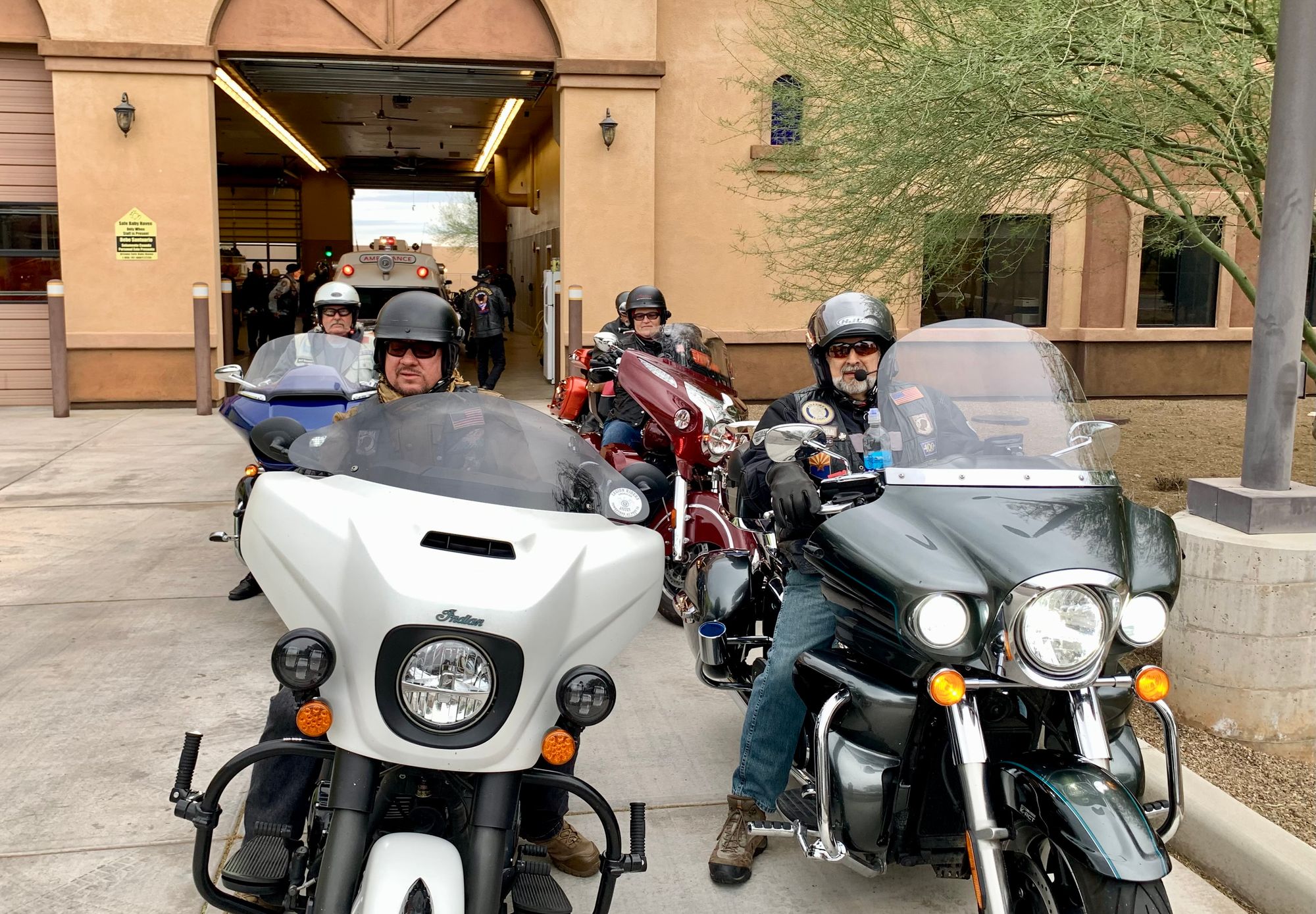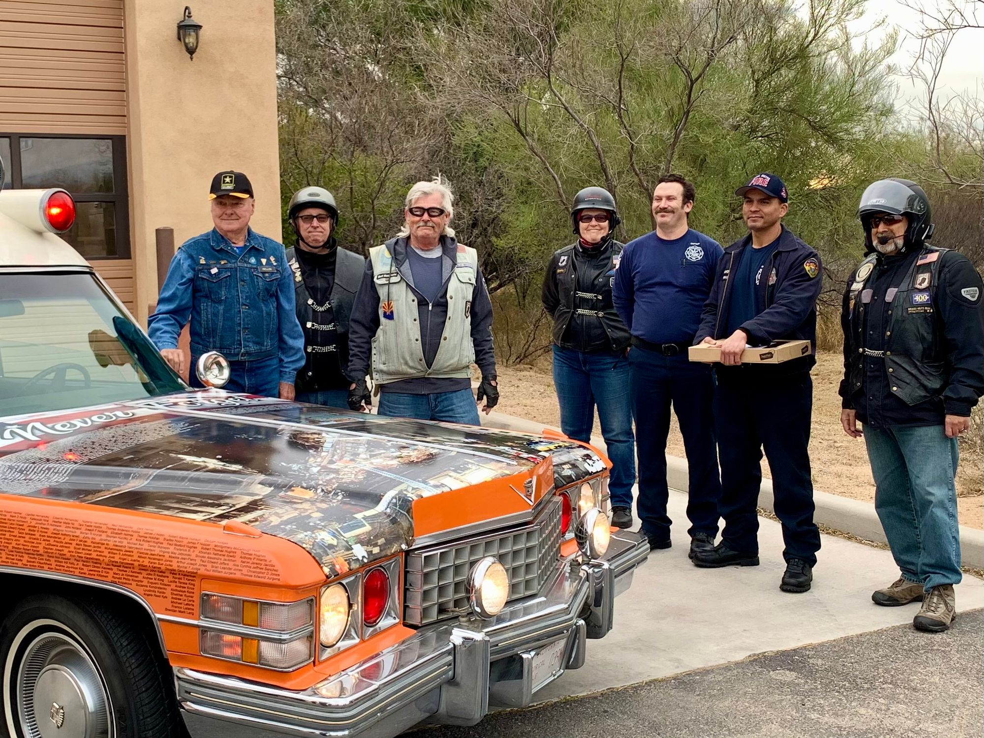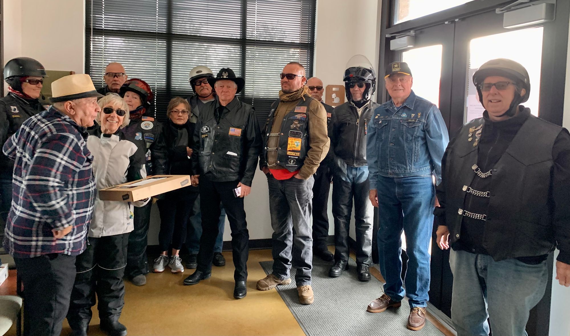 With a great heaping supply of God's Blessings, an Emergency Call for the Fire Crews at Station #'s 152 & 153 (our first two visits) the doughnut Delivery and 'visits' were QUICK. That extra time had us sipping hot conncoctions at the "Thaw" after party before the Rain hit the ground. We did miss a few of our BNR Riders at the Thaw though, they 'beat feet' home to STAY dry.