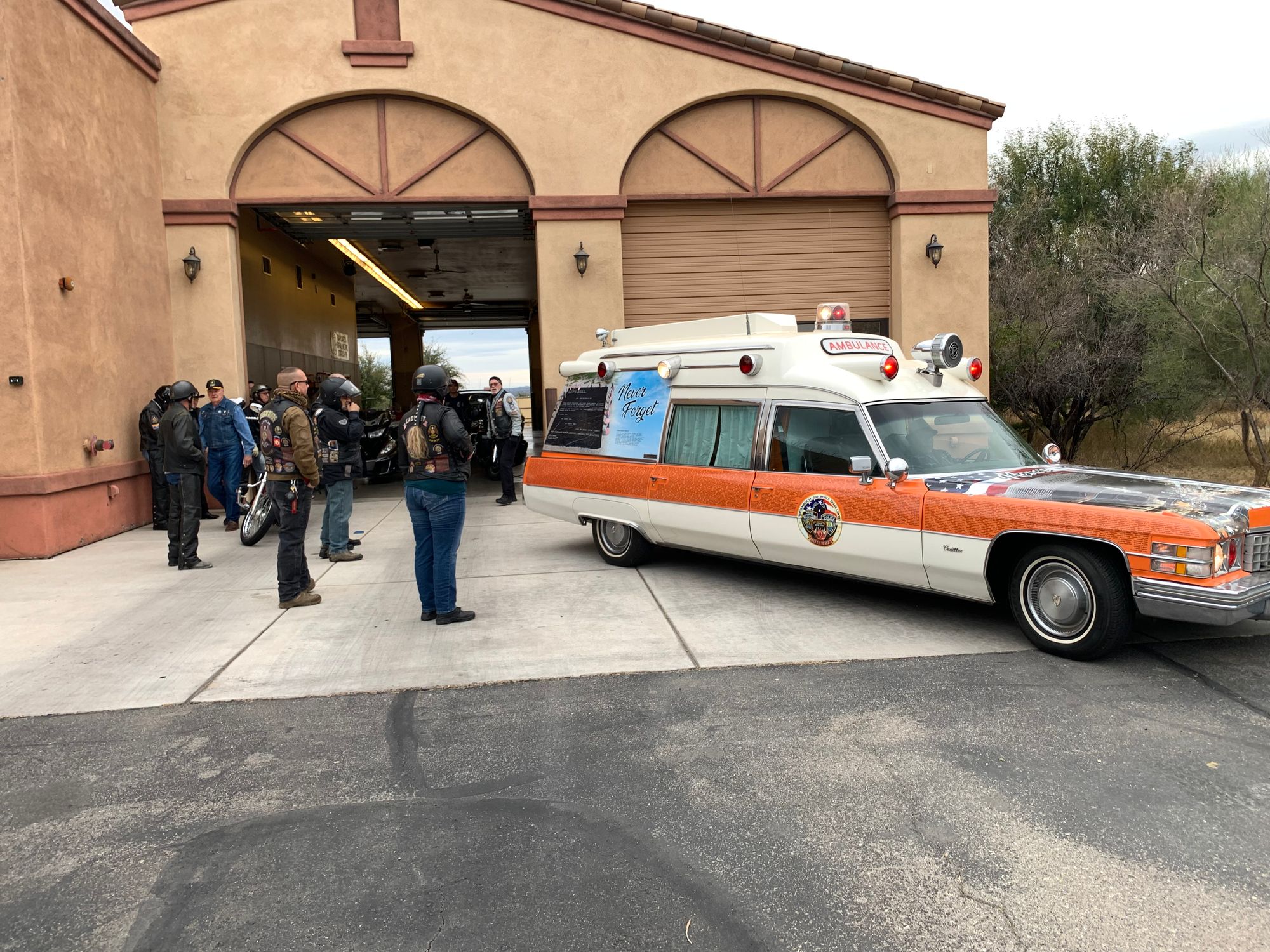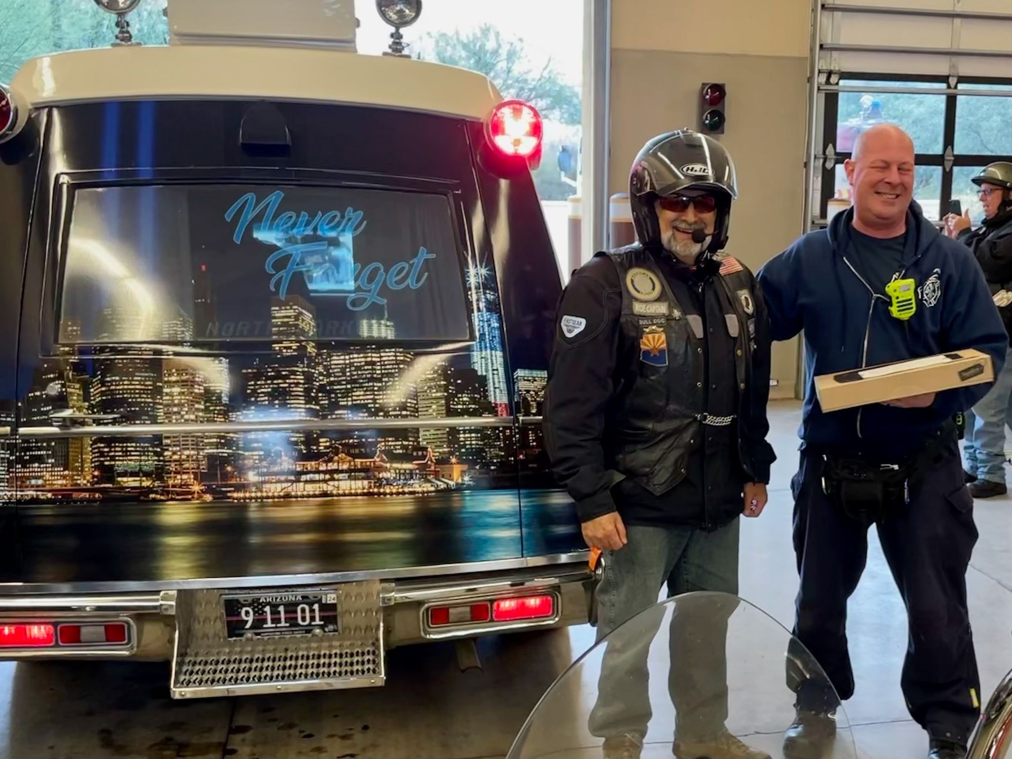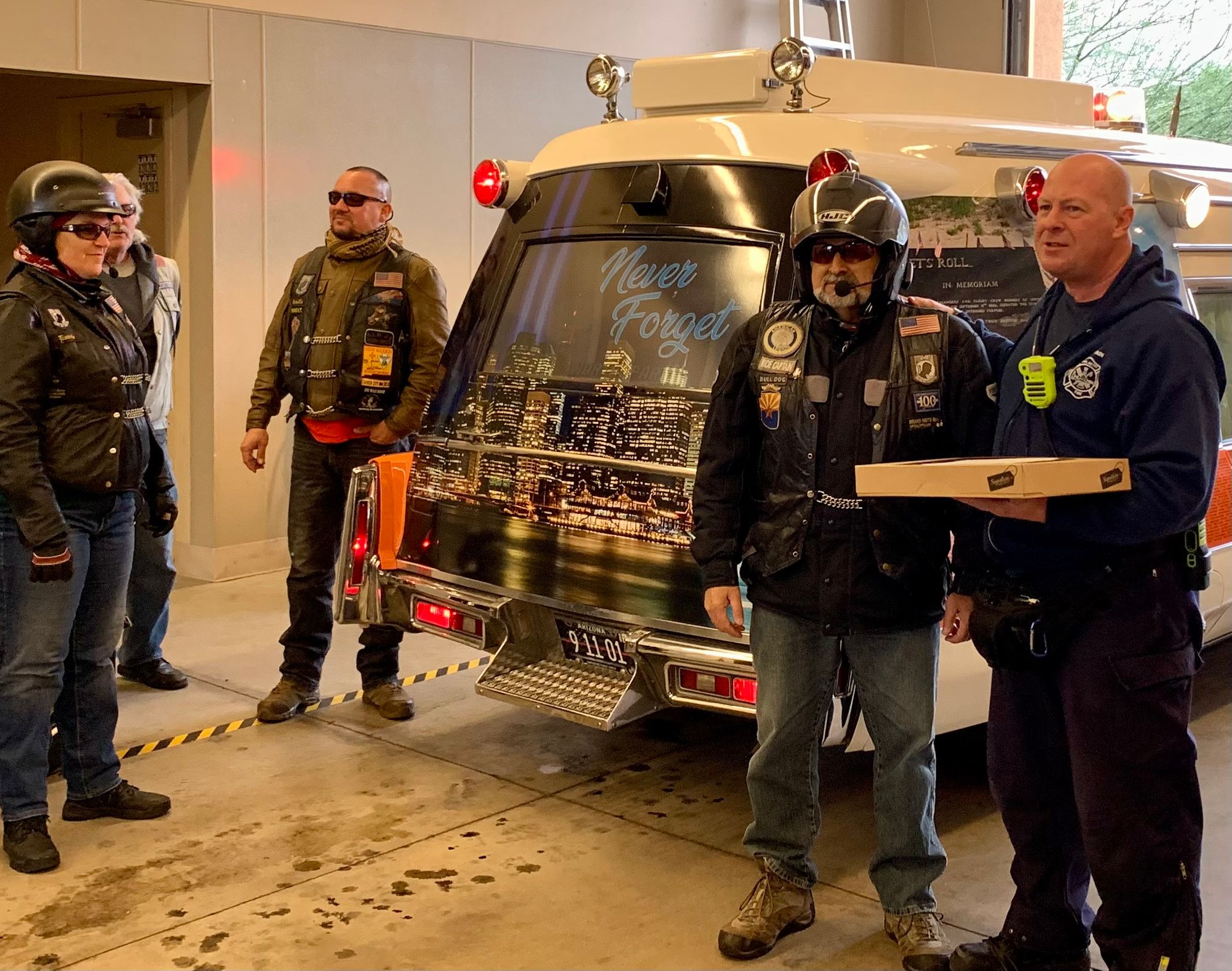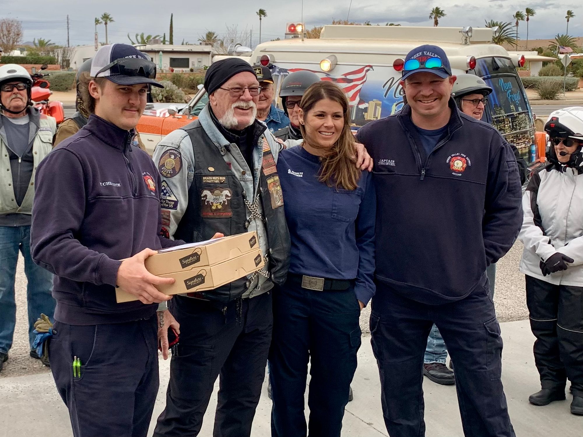 A Very Special Thanks to ALL in Attendance, All the Fire Crews and their Chiefs, Safeway for donating the doughnuts, Karen for setting up the "Thaw", Bulldog for leading the crew, Mike for snapping the memories, Keller's Cage for 'being there', Harley Guy and Judy for keeping the Crews informed as we traveled AND special mentions to Stu and JoLynn for the 9/11 Memorial Ambulance in our Formation (lights ablaze!)...AWESOME!...JLF